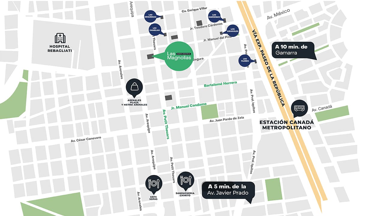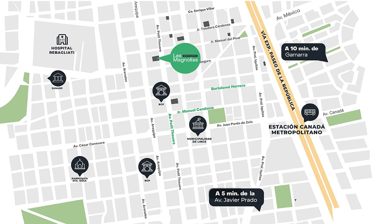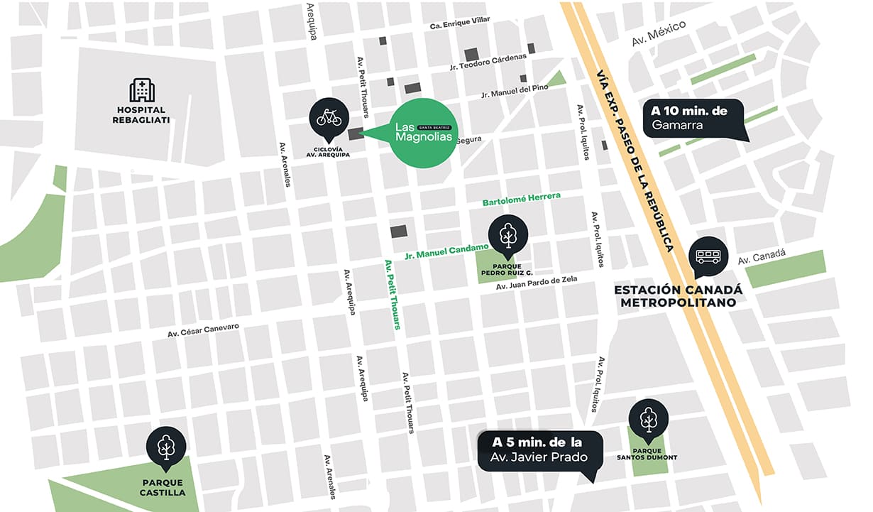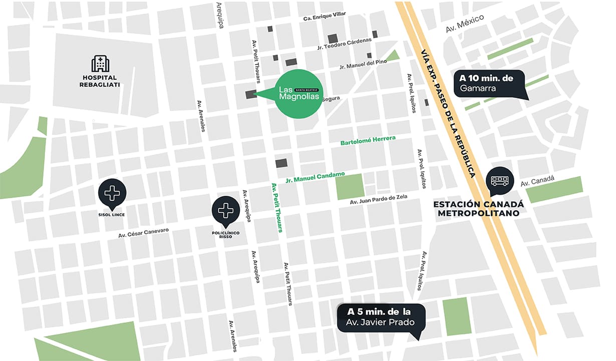 Las Magnolias es un edificio de 3 dormitorios diseñado pensando en tu bienestar y el de tu familia. Disfruta de exclusivas áreas comunes que hacen tu vida más cómoda y momentos inolvidables sin salir de casa. Ubicado en la mejor zona de Santa Beatriz, estarás a una cuadra de la Av. Arequipa, cerca de la Ciclovía Recreativa para los domingos en familia y del Circuito Mágico del Agua. Cotiza tu departamento y comienza a vivir hoy la experiencia de tu nuevo hogar.